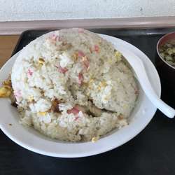 以前から頼んでみたかったチャーハンの大盛りを頼んでみた、ご飯の量で3合以上はありそうだ味付けはさっぱりしているがほどよくパラパラで食べやすい、具は卵とネギとかまぼことチャーシューなのだがチャーシューの量が多めなのでお得感が有る。