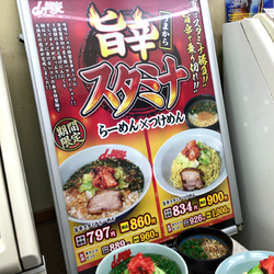 のぼり旗や懸垂幕が全て外されていますので、期間限定つけ麺目当ての方は、事前にHPで再開を確認するか、外回りのPOPを確認してから入店された方が良いでしょう。