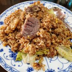 【ご飯】しっとりタイプ。油はやや多め。味付の強さは意外と穏やか。ご飯の量は普通程度。