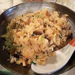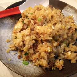辛痺の効いた麻婆豆腐が、しっとりした炒飯の上にドカンと盛りつけられています。