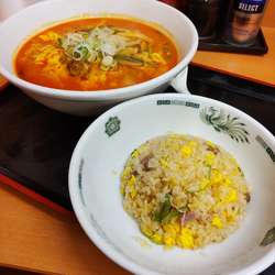 本日はコチラ「日高屋 蒲田東口店」へ伺い、ふとメニューを見て気になった「大宮担々麺+半チャーハンセット」を頂いて参りました。