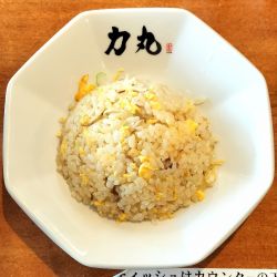 ツレ1号2号と力丸さんにお邪魔し、ラーメンのセットで半チャーハン+半餃子500円を頂きます。半チャーハンだけなら350円となります。