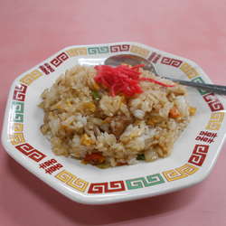 ベーコンを使ったしっとり炒飯は。量少なめですが優しい味付けです。