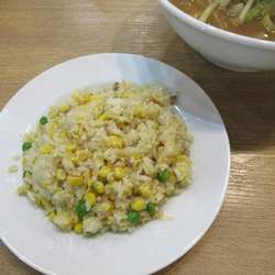 しっとりした炒めぐあいで、塩味は気持ち強いが、しょっぱすぎることはない。具は、定番の刻み葱。玉子。刻みチャーシュー。分量はミニらしい通常の半分程度で、ラーメンとセットで食べるのに丁度よく、250円とCPもまずまず。ちなみに、セットで食べたからか、チャーハンスープはついてこなかったが、右端にちょっと写っている白菜とキュウリの漬物が小皿で提供されたのは何気に嬉しい。