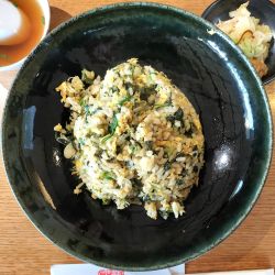 チョイスは大好物の、高菜チャーハン1000円+税。サイドに焼き餃子540円+税もコールし、丁寧なお姉さんからの提供を待ちます。