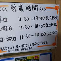 | 営業時間 | 11:30~19:00 [土] 11:30~18:30 [日] 11:30~18:00 ※ラストオーダーは各15分前 |