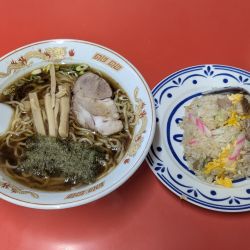 玉子チャーハンをメインに、ハーフラーメン(583円)、餃子(495円)をサッポロラガー中瓶(737円)で。