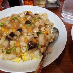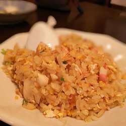 【ご飯】餡かけが掛かっていない箇所はぱらっとした仕上がり。炒飯自体の味付は穏やか。ご飯の量は普通程度。