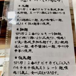 | メニュー | メニューの写真を見る 鶏鰹らー麺 800円 |
