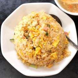 ツレ1号と伺った「麻婆飯店」さんで、ランチセットを頂きます。ワタシは麻辣麺セット1100円をチョイス。内容は麻辣麺と半炒飯です。そしてツレがチョイスしたのが炒飯定食935円。フルサイズの炒飯と、半サイズのラーメンのセット。それぞれ着丼すると、ツレのフルサイズ炒飯とワタシの半炒飯がトレードされました。