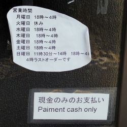 | 営業時間 | 18:00〜翌4:00 日曜11:30〜14:00/18:00〜翌4:00 |