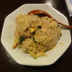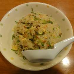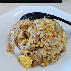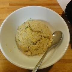 辛口肉そばBLACKとセットのチャーハンです。ラーメンとほぼ同時に提供、綺麗なドーム型です。レンゲですくうとパラリとほぐれる感じで、内部まで結構な熱でした。味付けはやや薄めでラーメンと食すには良い感じに見受けられます。具材は卵、チャーシュー、鶏、ネギなど。これ単品だと腹七分目くらい?ラーメンと一緒でほぼ満腹という感じです。