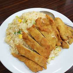 サイズ:多め、お椀型の炒飯の横に排骨