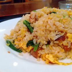 さて、豚バラ肉炒飯は豚バラチャーシューを大きめにカットしたものが入っていました。八角とカレーっぽい香辛料の味がします。しっとりした柔らかめのチャーハン。味は悪くありませんでした。