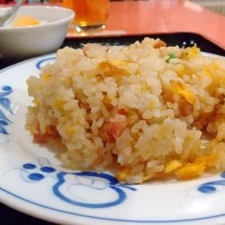 やや油多めの熱々チャーハン。海老の数は少なくなったけどご飯の量は相変わらず大盛レベル。チャーハンそのものはちょうどよい濃さの味付け。いつも思うが海老にも味付けしてくれると嬉しいんだけどな。