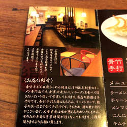 | メニュー | メニューの写真を見る 2019/10現在のメニュー(麺類他抜粋) |