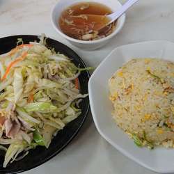 ラーメン着丼後、5分ほど遅れて半チャーハン到着。刻みネギ・刻みチャーシュー・卵という、超オーソドックスなしっとりタイプの一品…これぞ町中華。... 続きを見る