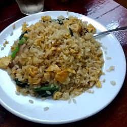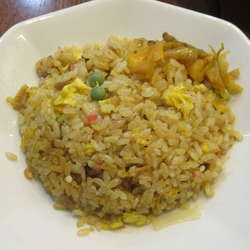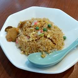 半チャーハンは、しっとりとパラパラの中間的な食感。割と味の幅があり、おいしい味付け。塩気はほんの少し強めで、しっかりした味付けを引き立てていた。具は、定番の3種である刻み葱、玉子、チャーシューに加え、あると嬉しいグリーンピースと彩的に赤が映える刻みなると。ピリ辛の味付けがされたザーサイが載っていたのも面白い。CPも良かったので、再訪あり。