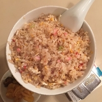 本当は上炒飯を食べる予定でした。誤って並を注文。見た目に炒飯皿でなく、丼に盛られてきました。普通目立つ具材は上にトッピングされているものですが、ただの焼き飯?一口食べたら、ぱらぱらなのにご飯がふっくらして美味しい。べちゃつきや、ぱらぱらだけど乾燥したような炒飯も嫌いです。ここの炒飯は違った。丼に盛られているせいなのか?最後にガラスープでも振りいれているのか?味も醤油ベースですが、醤油感が凄く適当。油っぽくないので食べやすかった。赤チャーシュー、ネギ輪切り、かまぼこ刻み、、卵、エビ1尾。このエビがなんと最後に丼に底か... 続きを見る