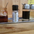 座席28席 座敷 (6人がけテーブルx2) ホール (6人がけテーブルx2、カウンター4席)