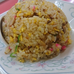 黒酢ということでもう少し酸味が効いたものかと思ったが、酸っぱさはなく、全体的な味わいが少し引き締まった感じ。気持ち濃いというか、塩気が強いというわけではないが、しっかりした味わい。ご飯粒は、しっとりでもべちゃっとした食感はなく、割と立っている。油っけは目立たない。具は、玉子に、小松菜。チャーシューは刻んだものではなく、一回り大きめの小間肉がそこそこ入っていて、肉の旨味がよく味わえ、それらの旨味もご飯に移っている印象でなかなかおいしかった。