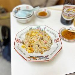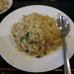 ご飯パラパラ。味付良く、ピリ辛ラーメンスープに合います。