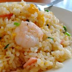 ハムや海老が入ったチャーハン。特徴は特になく量も多くない。海老は素揚げのようで何も味が付いてなくてもの足りない。
