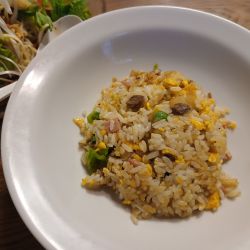 半チャーハンとは書いてないが3/4程度で胃にもたれない。