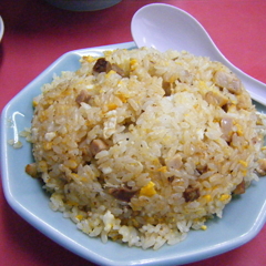 半チャーハンは、しっとりとパラパラの中間の歯ごたえ。油は気にならず、塩気は気持ち強めで、はっきりした味わい。具は刻み葱。玉子。刻みチャーシュー。分量は、半チャーハンでも、やや少ない印象だが、セットで食べる分には十分腹は膨れた。