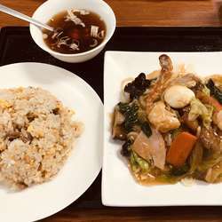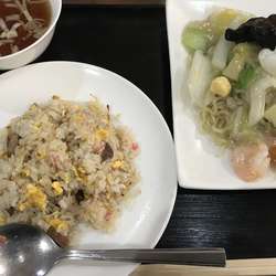 ランチで中華つばめ。本日の日替り4番を選択。餡掛けそばが時間差でやってくるので、炒飯をちょっと食べてしまったのはご愛嬌😁プリップリのエビが3尾に、白菜、人参、キクラゲ、タケノコ、鶉卵の布陣。餡が中太縮れ麺にガッツリと絡み相変わらず旨い。しっとりモチモチ炒飯も安定の美味しさ。今日も腹パンフィニッシュでご馳走様。