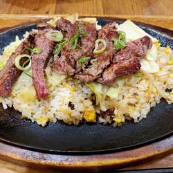 | メニュー | メニューの写真を見る にんにく焼飯(牛肉&レタス) 980円(税抜) |