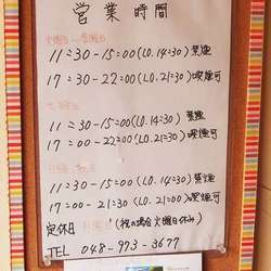 | 営業時間 | 火曜日~金曜日11:30~15:00/17:30~22:00 土曜日 11:30~15:00/17:00~22:00 日曜日-祝日 11:30~15:00/17:00~21:30 |