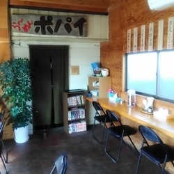 お店の看板のところに「ポパイ」の見慣れた絵が。